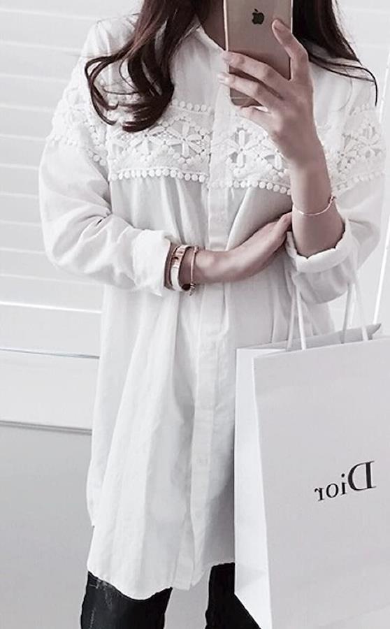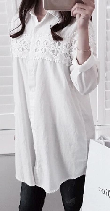 ・レースデザインが施された、シャツチュニックがです。。 BIGシルエットなのでゆったりとした着心地。