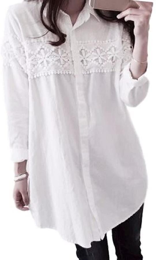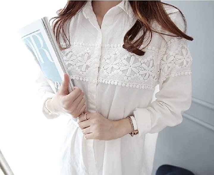 白黒長袖おしゃれレース柄ロング薄手シャツチュニックレディース