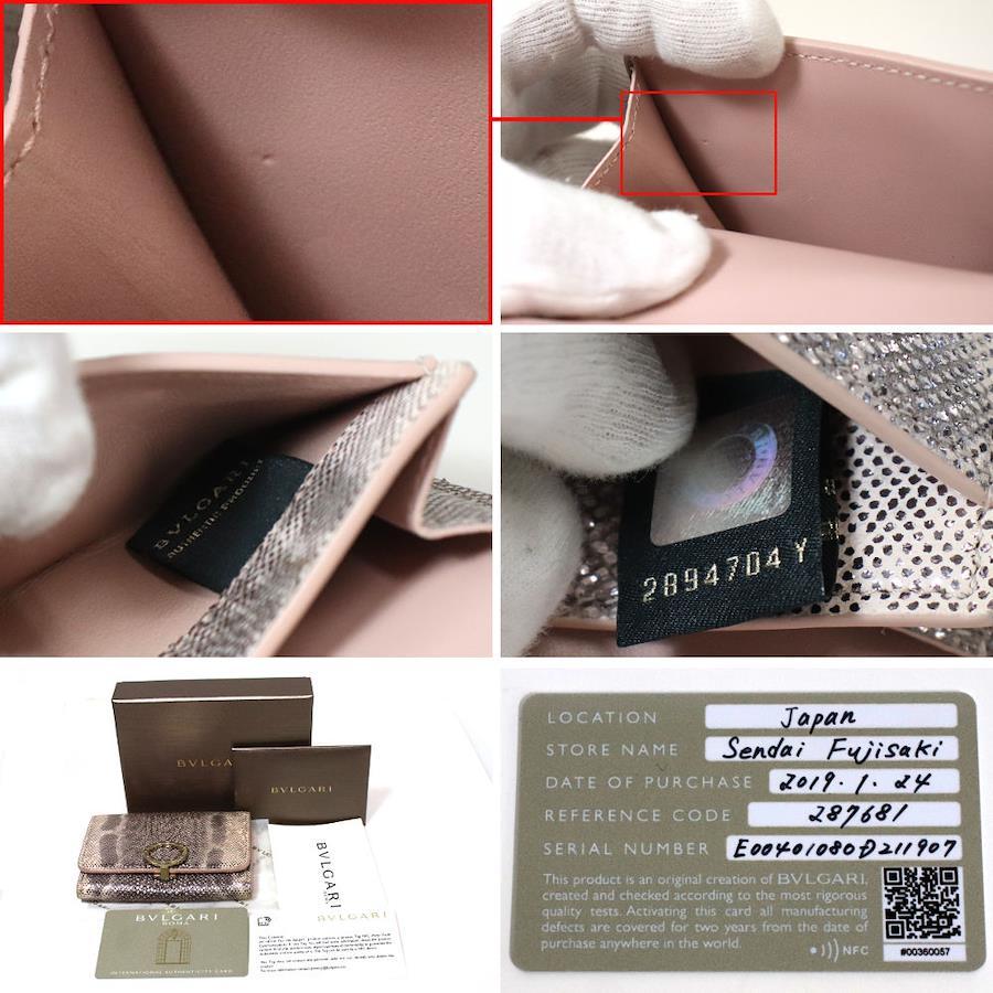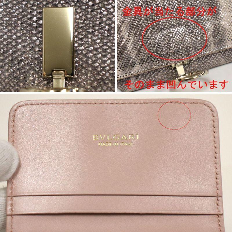 ブルガリのカードケース、ブルガリ ブルガリビジネスカードホルダー(287681)の中古品です。メタリックカルングスキンを使用したオシャレなカードケースです。ロゴクリップが当たる部分に金具の押し跡があります。フラップ内のレザーに反射材の付着や傷があります。部分的に傷はありますが、使用感の少ない綺麗なお品物です。+---+---+---+---+---+{状態}外側A内側A{素材}メタリックカルングスキン{サイズ}約11cm x 8cm x 2cm。{その他}カードポケット3マチ付コンパートメント1{付属品}箱、ギャランティカード{お問合せ商品番号}20080011+---+---+---+---+---+。
