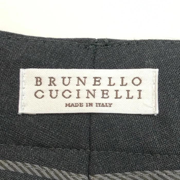 【管理番号】 015749w【ブランド名】ブルネロクチネリ【商品名】【アイテム】クロップドパンツ サイズI38 7号 S相当【型番】【サイズ】 I38(7号/S相当) 平置採寸(ウエスト:約37cm・総丈:約87.5cm・股上:約23.5cm・股下:約60cm・わたり幅:約25cm・裾幅:約14.5cm)【色・柄】 チャコールグレー【素材】 表地:ウール75%ナイロン23%ポリウレタン2% 裏地:ポリエチレン36%アセテート32%レーヨン32%【附属品】【外観ランク】 SAランク【商品補足説明】季節:春夏秋 ポケットあり。