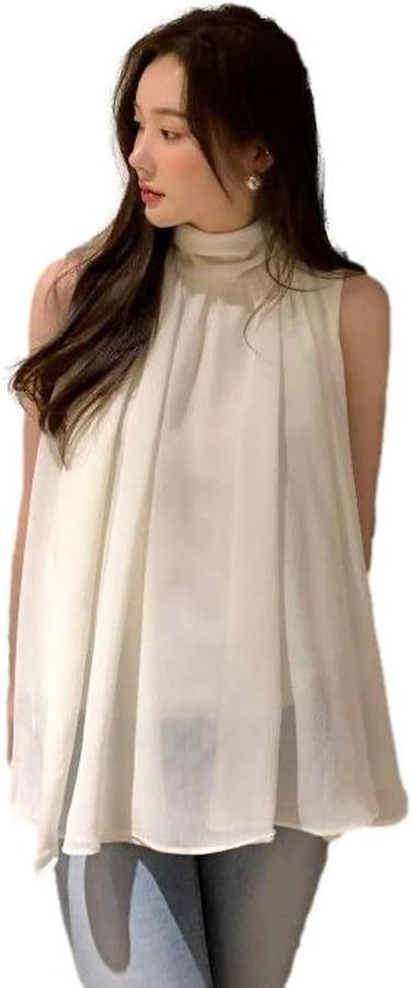 「ふんわり軽やかに揺れる、シフォンブラウス」 動きに合わせてふんわりと軽やかに揺れる、優し気な表情のノースリーブブラウス。