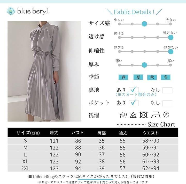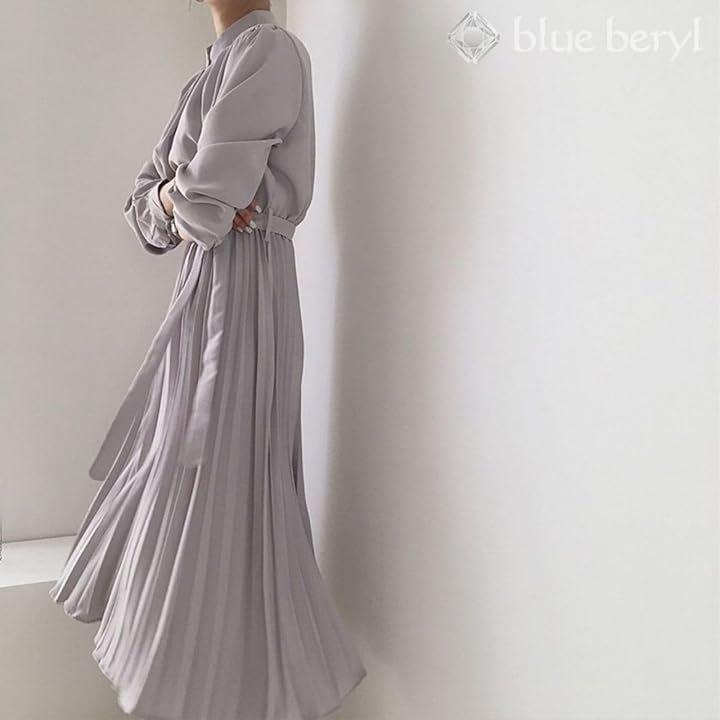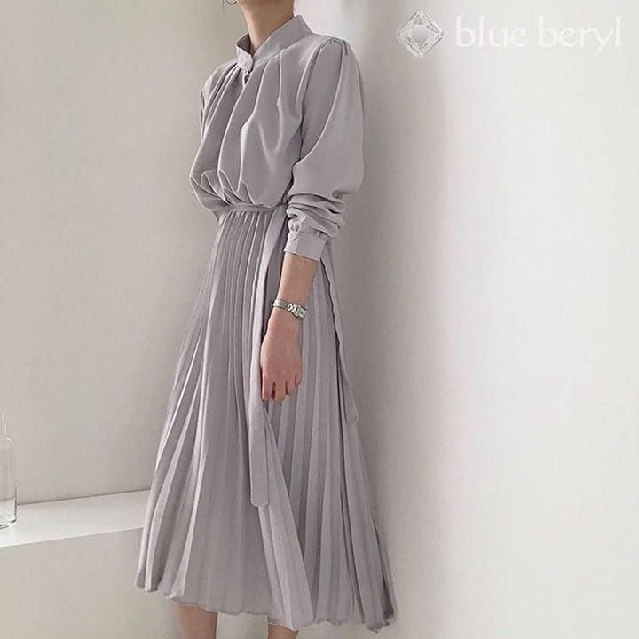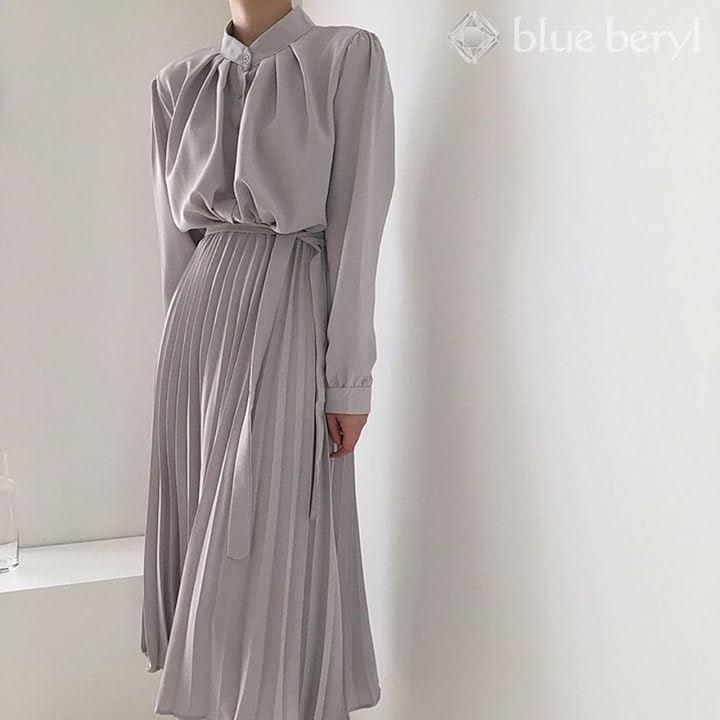 Blue Beryl Chiffon Dress Long Pleated Women's Long Sleeve High Waist Waist Ribbon Flare Spring Autumn BB054
