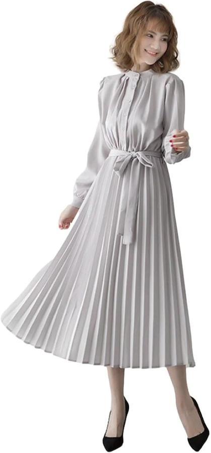 「エレガントな美シルエット」 ウエストから裾に向かって施された細かいプリーツが縦長ラインを強調し、エレガントな美シルエットを描く上品ロングワンピース。