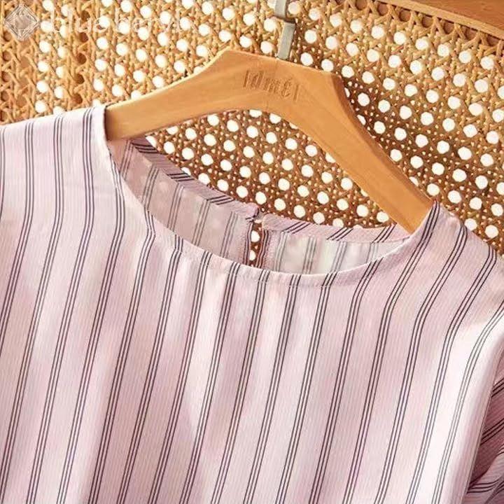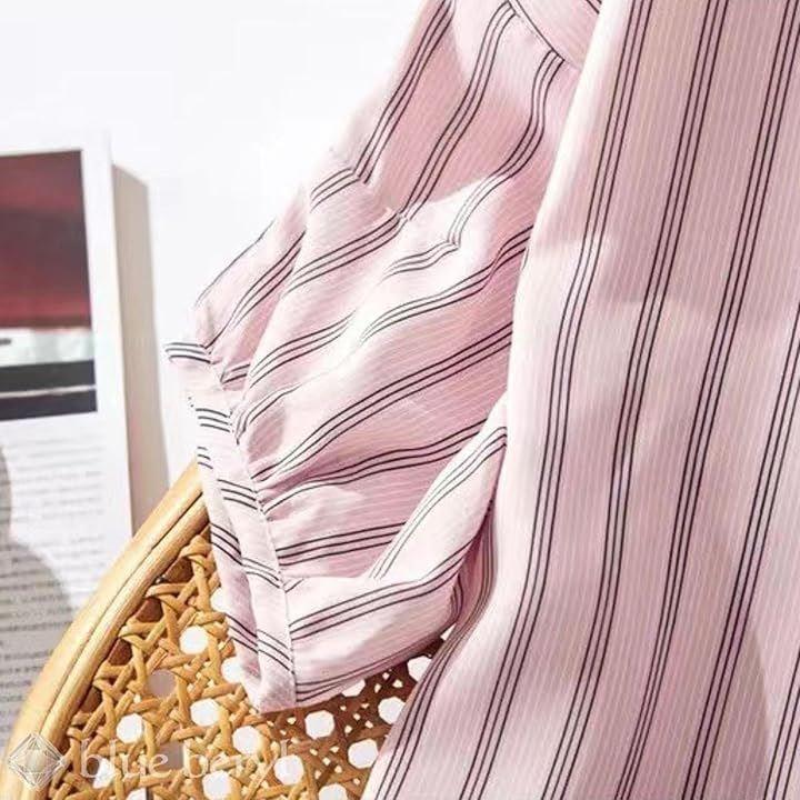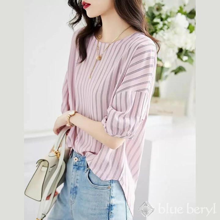 「軽やかな着心地が嬉しい、スタイルを格上げしてくれるブラウス」 ふんわり優しい印象をまとえる、ストライプブラウス。