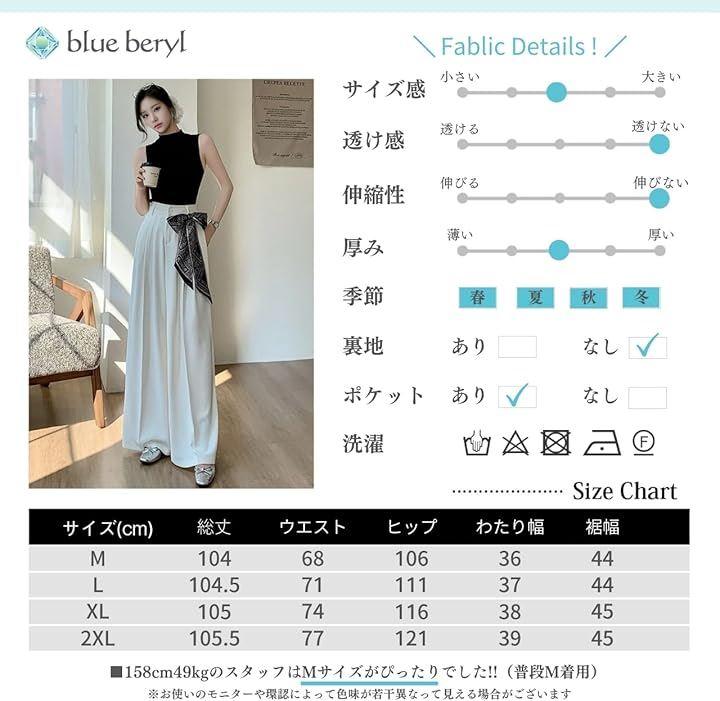 総丈/ウエスト/ヒップ/わたり幅/裾幅 M: 104/68/106/36/44 L: 104.5/71/111/37/44 XL: 105/74/116/38/45 2XL: 105.5/77/121/39/45 *158cm/49kgのスタッフの場合:Mがジャストサイズでした(普段M着用)