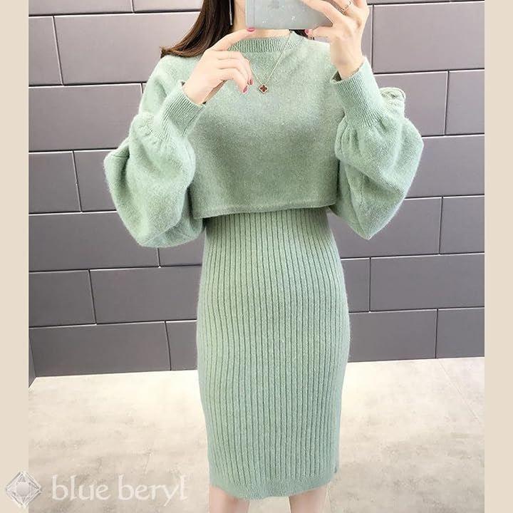 「小物合わせで自由に変化を楽しむ」 まとうだけでコーディネートが決まるツーピースニットワンピース。