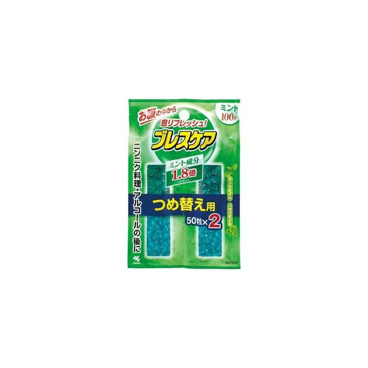 ※パッケージデザイン、内容量、原材料名等は予告なく変更する場合があります。パッケージデザイン、内容量、原材料名が異なる場合でも、返品、交換の対応は不可となりますので予めご了承下さい。メーカー品切れになっている場合は予定日より出荷が遅れることもございますので予めご了承ください発送までに7営業日以上かかる場合は別途ご連絡いたします。【ブレスケア ミント つめ替え用の商品詳細】●ニンニク料理、アルコールの後の息をすっきりさせます。●ブレスケアはおなかの中で溶け出す息清涼カプセル。●カプセル中のスペアミントオイルなどの清涼成分がさわやかな息となり、お口をリフレッシュさせます。