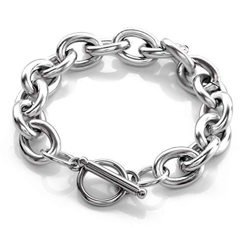 Bracelet for Men and Women, Stainless Steel Mantle Chain, Silver, [SEIYA INTERNATIONAL] (Width: 12mm)