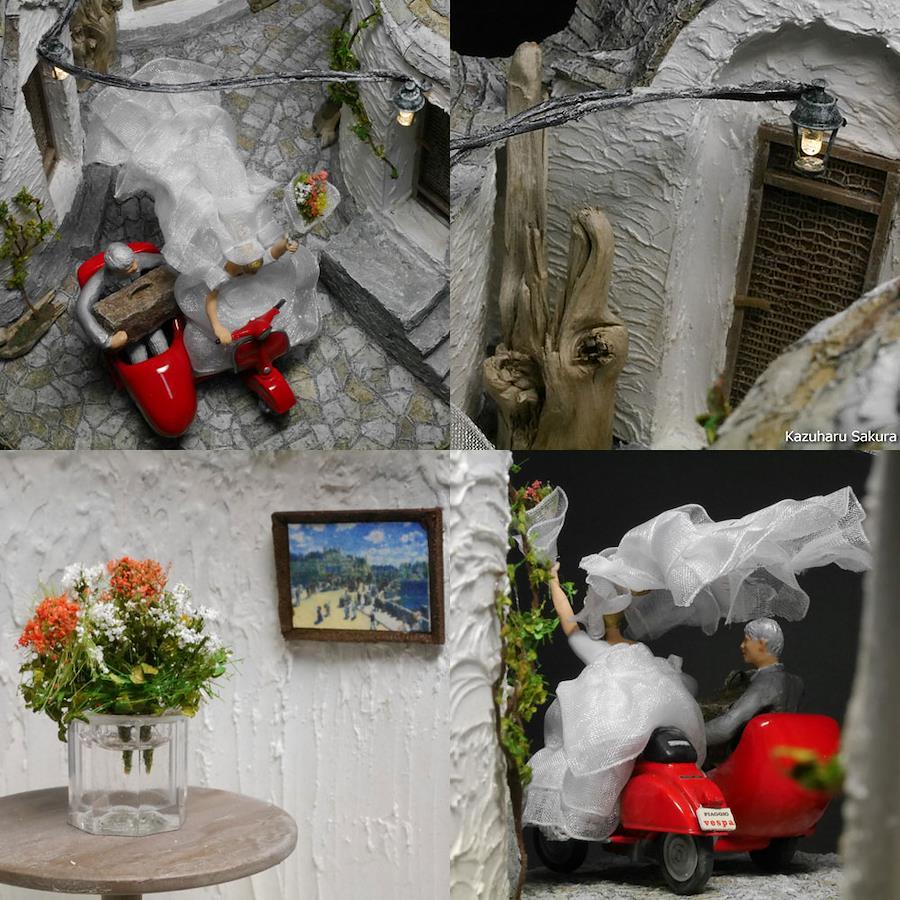 備考:街灯にLED3灯電飾済み。単三電池3本使用。作品底面に電池ボックスが収納されており、ボックスに電源スイッチあり。