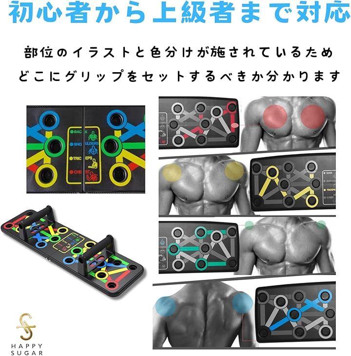 「初心者から上級者まで対応」部位のイラストと色分けが施されているため、初心者でもどこにグリップをセットするべきかが一目で分かり、トレーニングをスムーズに始められます。