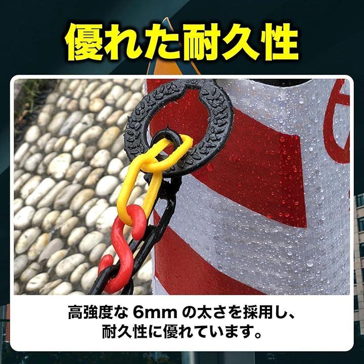 「用途例」駐車場や工事現場での安全確保、鎖やロック用チェーンとして利用可能、パーテーションや区域分けの設置、三角コーンやチェーンスタンドを使った誘導や仕切り、立入禁止や侵入防止エリアの目印に最適