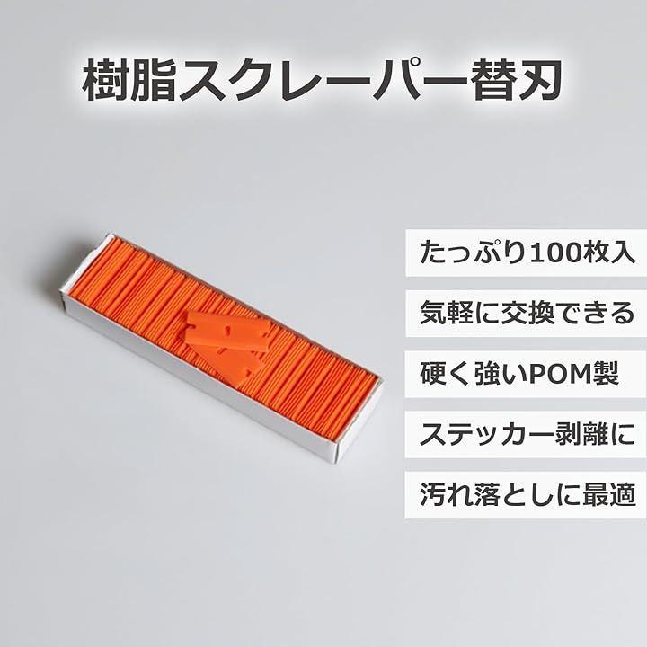 「樹脂製スクレーパー替刃100枚入り」たっぷり入って気軽に交換できるPOM樹脂製の替え刃式スクレーパー用ブレード。