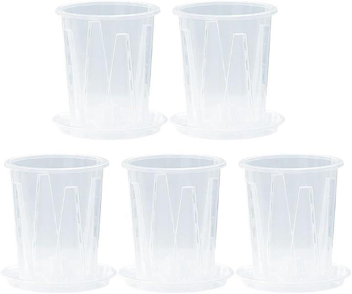 Set of 5 Clear Plastic Flower Pots with Slits, Perfect for Houseplants, Stylish and Clear