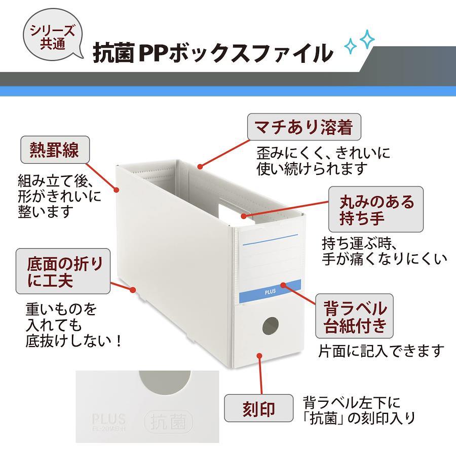 衛生面に配慮した抗菌剤配合のPPボックスファイル。内側・外側ともに抗菌仕様で、アルコール消毒液でのふき取りも可能。サイズ(ハーフ):縦163×横319×背幅100㎜材質:本体・中敷き・背ポケット:ポリプロピレン(抗菌剤配合)/背ラベル:紙組立式 / 背ラベル付き(片面:記入欄付き) /中敷き付き【免責事項】メーカーによる商品リニューアルに伴いパッケージが変更が行われた場合、新パッケージでお届け致します事ご了承願います。