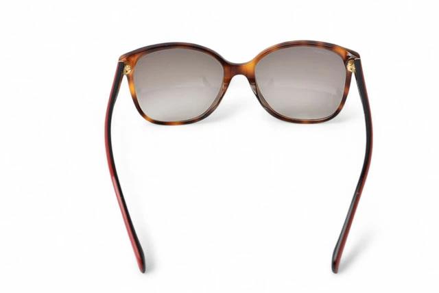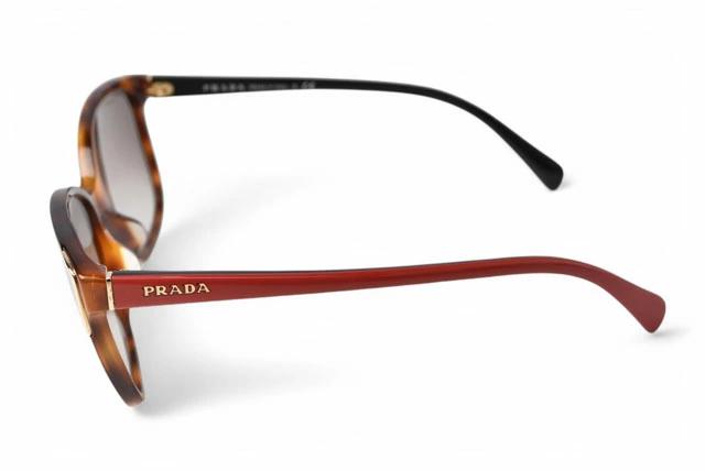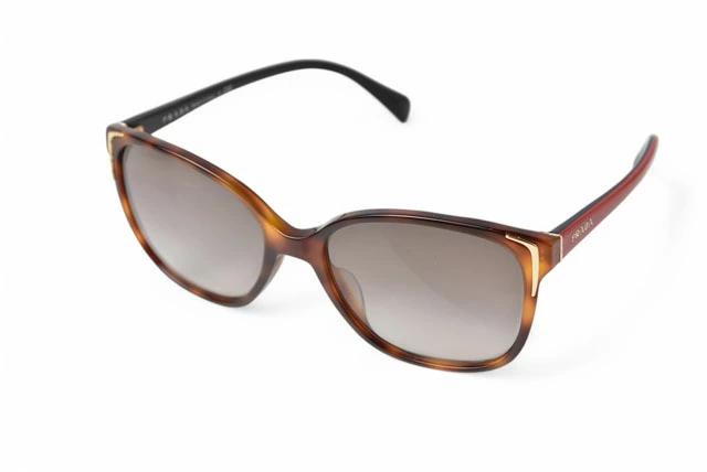 プラダより、レディース向けサングラスです。左右の耳かけフレーム(テンプル)にPRADAのロゴがアクセント。べっ甲風のお洒落なデザインのサングラスです。人気の小物雑貨です。
