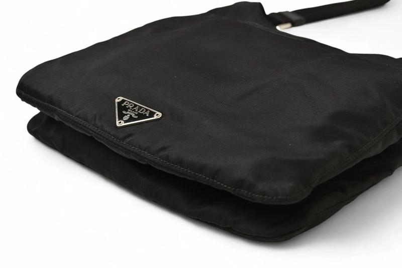 商品説明 | プラダより、軽量で人気のナイロンショルダーバッグです。フロントにはPRADAのトライアングルプレートが施され、高級感があります。男女兼用で、旅先でも大活躍しそうです! |
