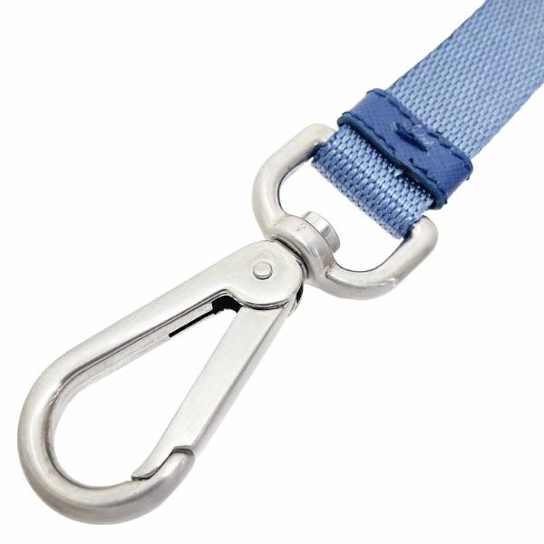 Pre-owned Prada logo neck strap in blue nylon with key hook and ID.