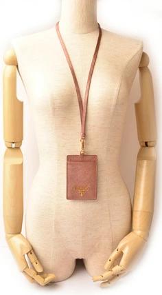 PRADA ネックストラップ付 1MC007 バッジホルダー ピンクメタリック