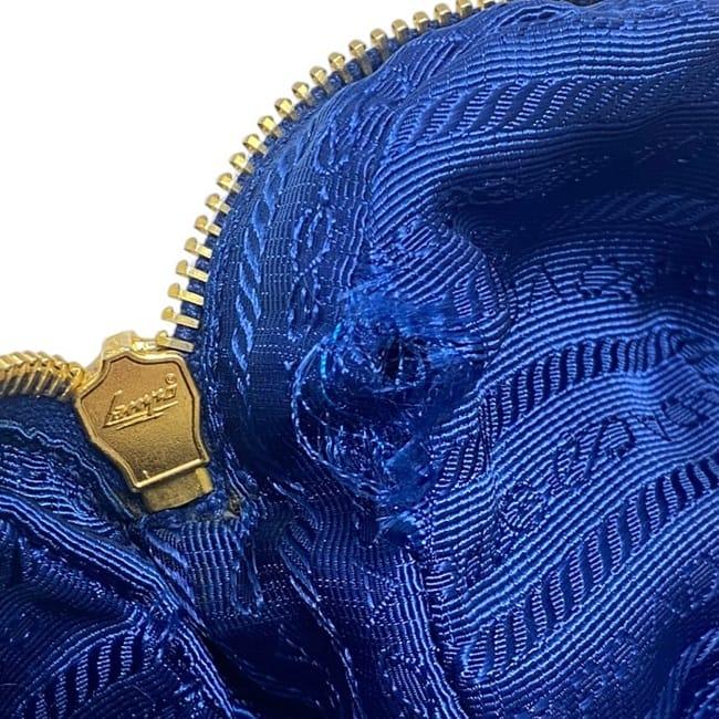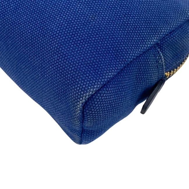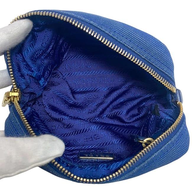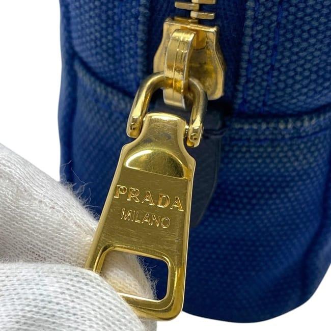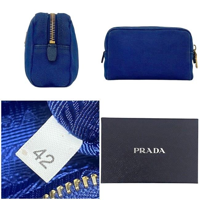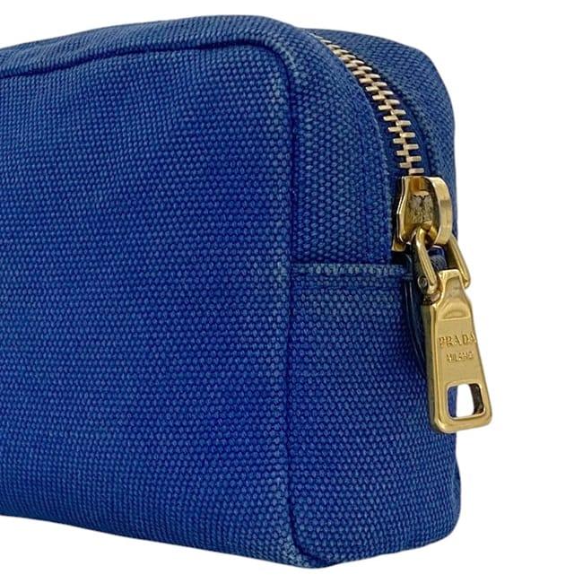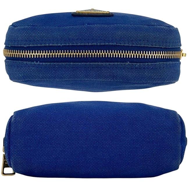 ☆---- 商品について ----☆プラダ ポーチ ec-24112 ブルー 1NA021 小物入れ キャンバス 中古 42 PRADA ファスナー 青 三角 ロゴ プレート メンズ レディース 男女兼用 コスメ 化粧ポーチ 定番 人気 軽い ヴィンテージ ロゴ金具 ゴールド金具 布地 箱付き ブランド 本物 鑑定済み