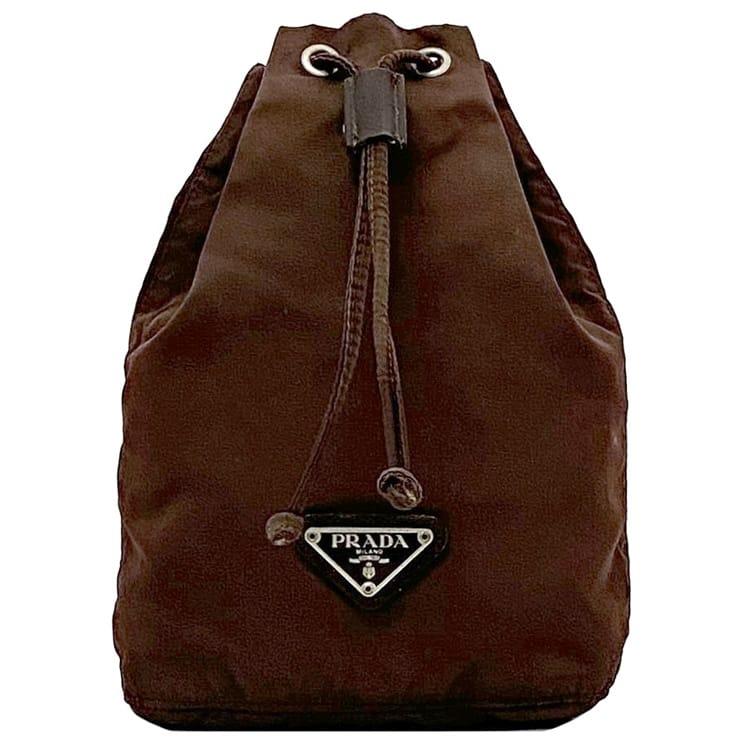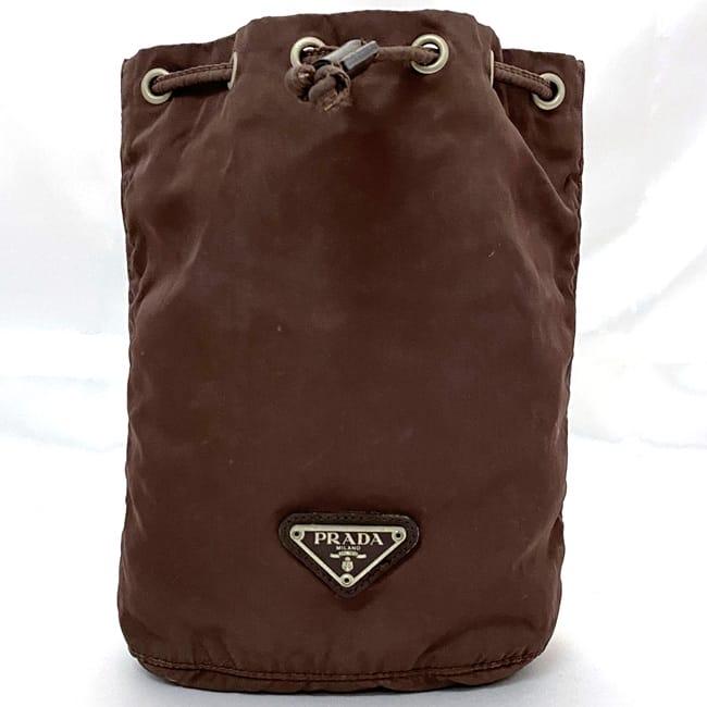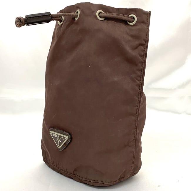 Prada Drawstring Pouch ec-22645 Brown Tessuto Accessory Case Nylon Used 59 PRADA Triangle Drawstring Lightweight Pouch Plate Vintage Logo Classic Popular Men's Women's Small Accessory Case Stylish Simple