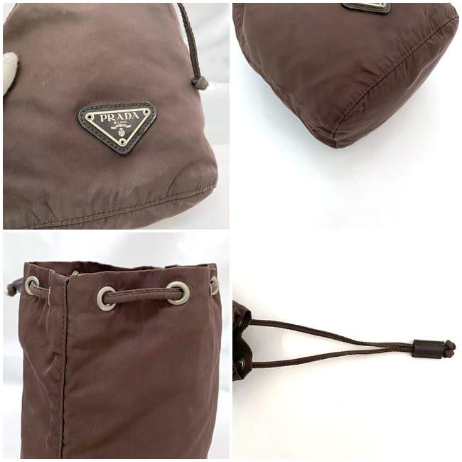 ☆---- 商品について ----☆プラダ 巾着ポーチ ec-22645 ブラウン テスート 小物入れ ナイロン 中古 59 PRADA 三角 巾着 軽い ポーチ プレート ヴィンテージ ロゴ 定番 人気 メンズ レディース 小さい 小物 ケース お洒落 シンプル エレガント ワンポイント 上品 ブランド 本物 鑑定済み