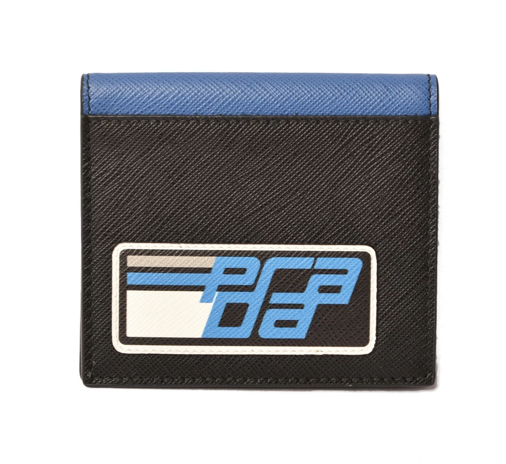 プラダ 財布 メンズ向けPRADA 折財布/札入れ 2MO004 SAFFIANO PATCH/パッチワーク ブラック/アズーロ