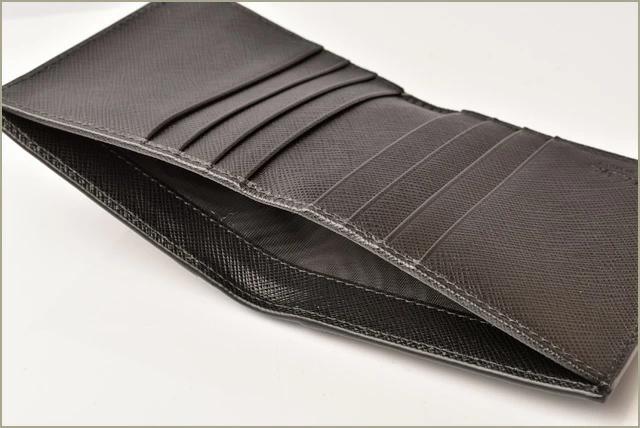 プラダより、メンズ向けの折財布です。インパクトのあるパッチワークに、PRADA ロゴがデザインされ、存在感があります。お札入れと、コインケースを分けて持つ方にもおすすめです。スリムなフォルムでバッグの中やポケットの中でもかさばりません。贈り物にも、オススメです。