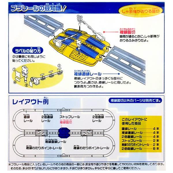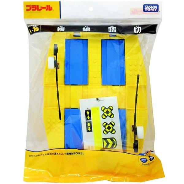 ロングセラー鉄道玩具シリーズ「プラレール」はレールの規格が統一されているので、いろいろ繋げて楽しいレイアウトが作れます。複線モジュールの踏み切りです。車両が通過すると遮断機が下ります。情景部品を使って、楽しいレイアウトにしよう!