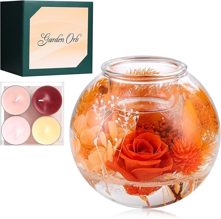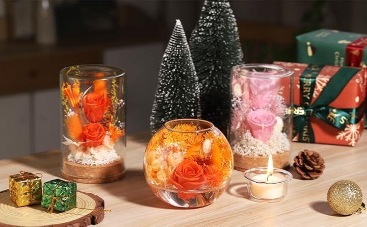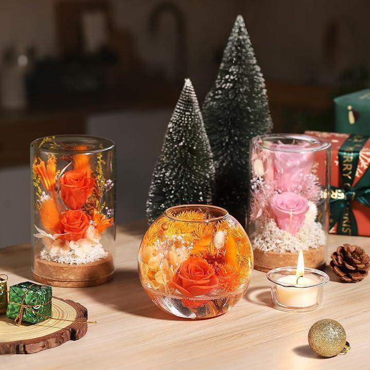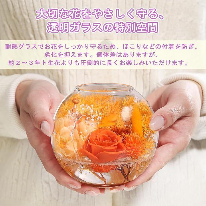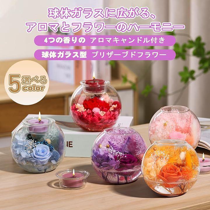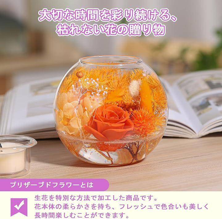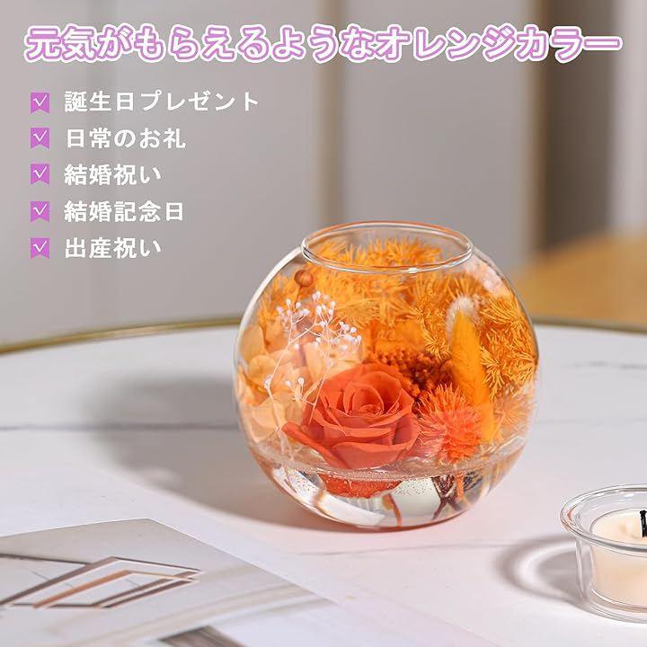 「大切な人に贈る華やかな癒しギフト」 プリザーブドフラワーを詰め込んだまんまるかわいらしいフォルムの金魚鉢型キャンドルスタンドは、母親や祖母、友人、同僚、パートナーへの贈り物として最適です。