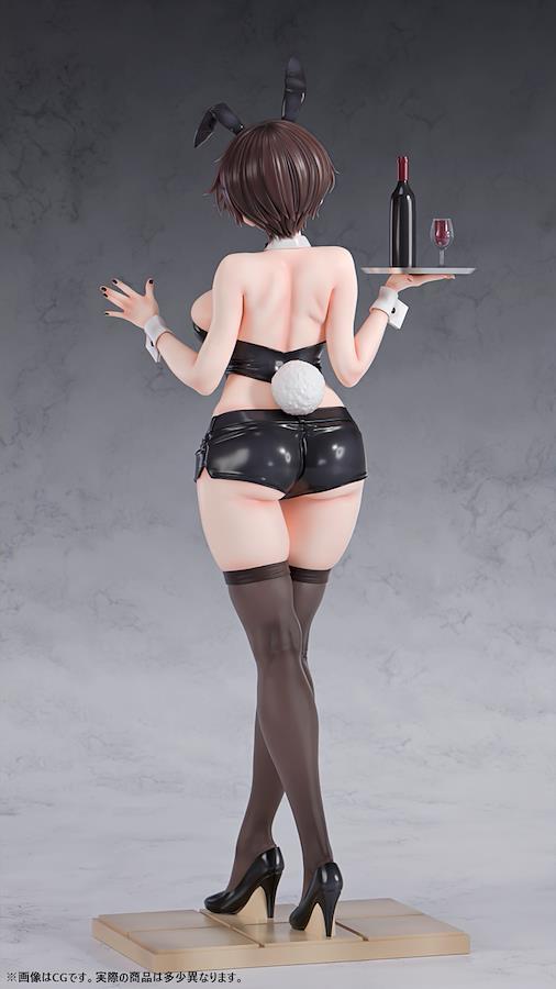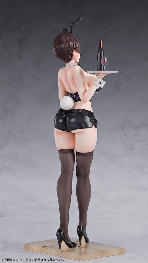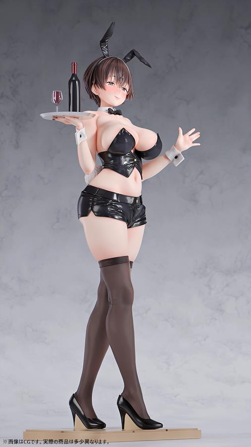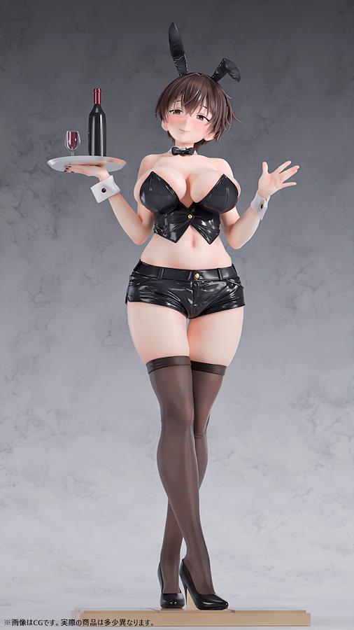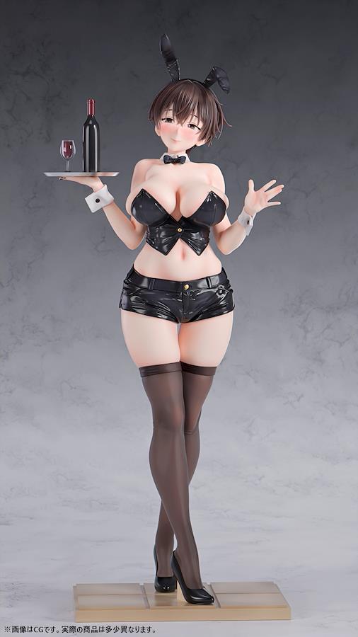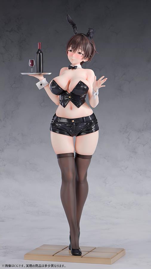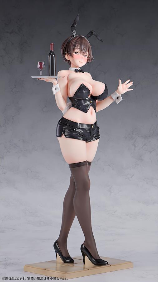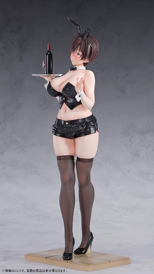女性にモテる“王子様系女子”が、艶やかなバニースタイルであなたをお出迎え――。オリジナルフィギュア・プリンスガールのおもてなしバニー「風宮かなで」が1/6スケールで新登場。ボーイッシュなショートヘアに、どこか余裕を感じさせる優しい微笑み。頬をほんのり染めた表情は、凛々しさと可愛らしさが同居する“プリンスガール”ならではの魅力を表現しています。光沢感のあるブラックのバニーコスチュームは、身体のラインにぴったりと沿うタイトな造形。大胆に開いた胸元や引き締まったウエスト、健康的でしなやかな脚線美まで、丁寧に立体化しました。透け感のあるストッキングやエナメル調のハイヒールなど、こだわりの質感表現にも注目です。ワインボトルとグラスの小物が、まるで高級ラウンジで特別なおもてなしを受けているかのような雰囲気を一層引き立てます。可憐さと色気、そして“頼れる王子様感”を兼ね備えた風宮かなでを、ぜひあなたのお部屋にお迎えください。