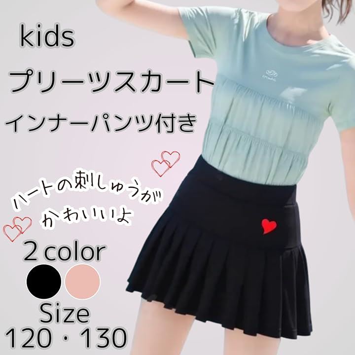 プリーツが揺れるミニスカは、カジュアルから発表会までOK。ウエストゴムで小さいお子さまも履きやすい。