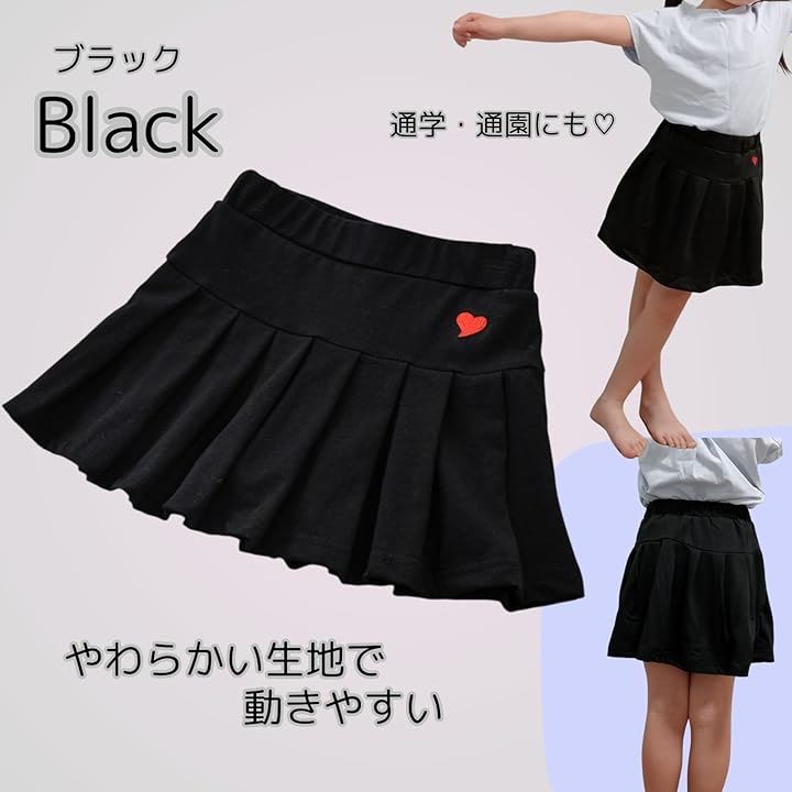 動きやすいキュロットスカートは、元気なキッズに最適。可愛いハート柄で着回し力抜群のアイテム。