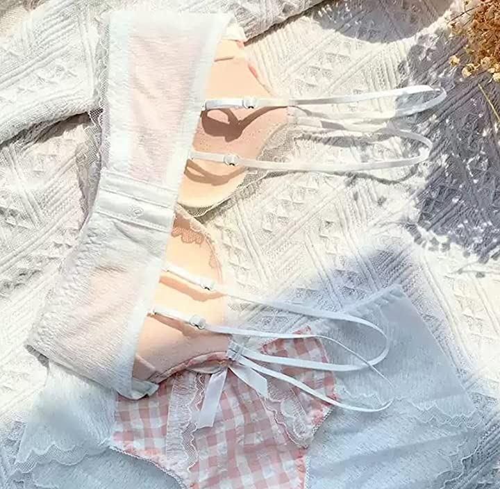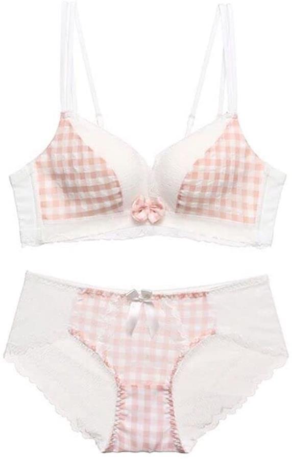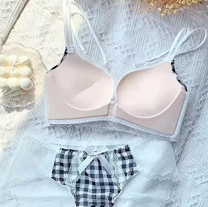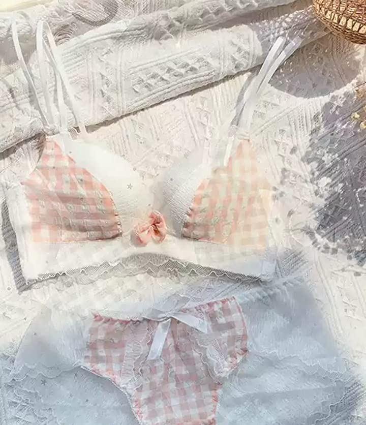 可愛いデザインのノンワイヤーブラとショーツ上下セット。