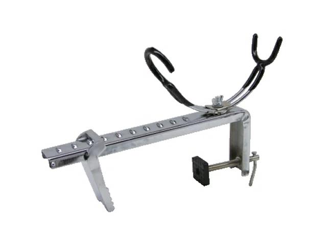 岸壁の車止めや釣り公園の手すり柵、船べりなどに取り付けられる竿受け。