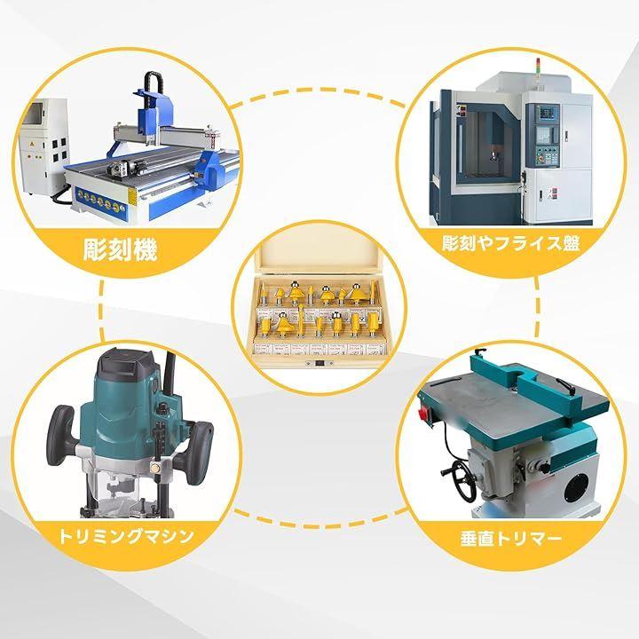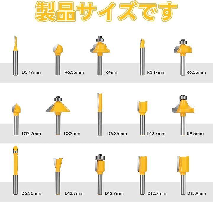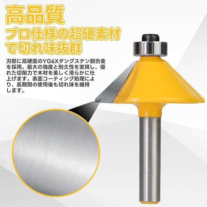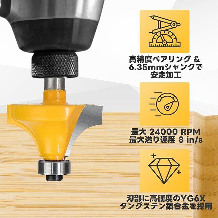 シャンク径は6.35mmで、ほとんどのトリマー(ルーター)機種に互換性があり、振動を抑え安定したパフォーマンスを発揮します