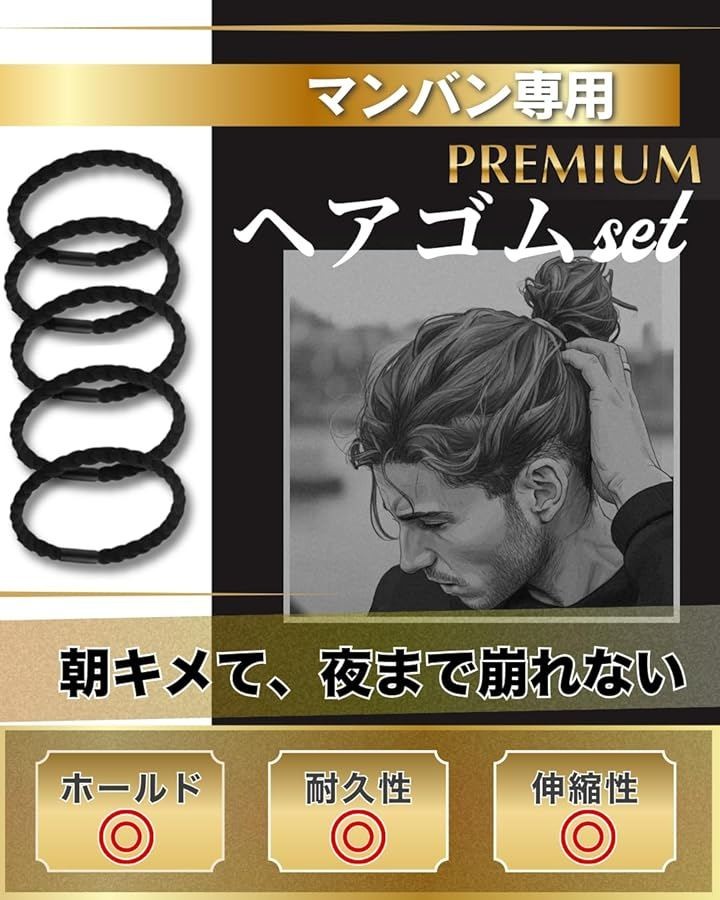 「マンバン専用 プレミアム ヘアゴム(メンズ 向け)」 結ぶだけでマンバンがかっこよくキマる。