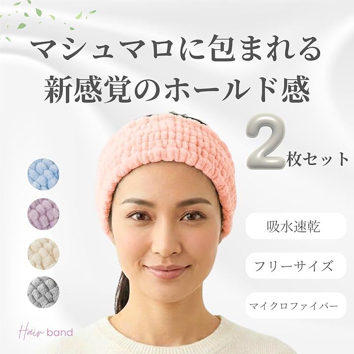 前髪から横髪まで幅広くホールドしやすい設計で、手が濡れた状態でも着脱しやすいターバンタイプです。