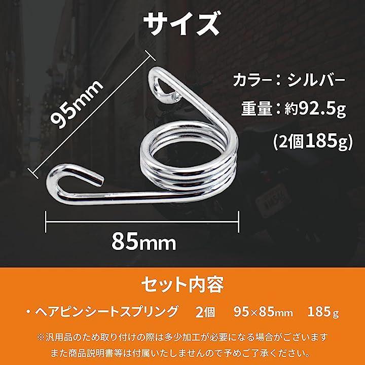 「サイズ」約95mmx85mm、「重量」約92.5g/個、「カラー」シルバー、「セット内容」ヘアピンシートスプリング 左右2個セット