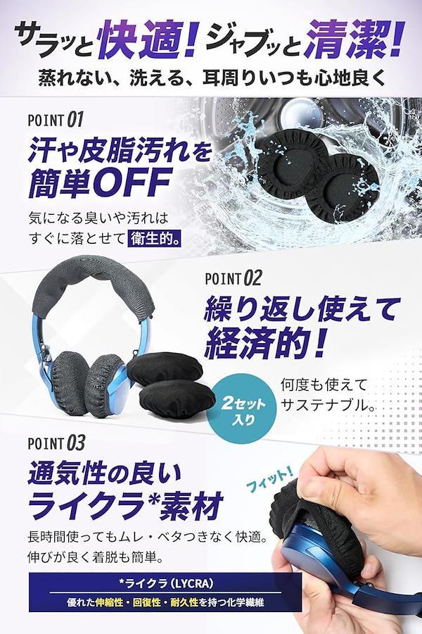 「耳クリーン・音クリア」で快適リスニング 経済性 繰り返し使用可能でサステナブル ヘッドホン本体の買い替え不要 2セット入りでお得 使用方法 簡単装着:イヤーパッドにサッとかぶせるだけ お手入れ:汚れたら水洗い可能 着脱:伸縮性が良く簡単に取り外し可能
