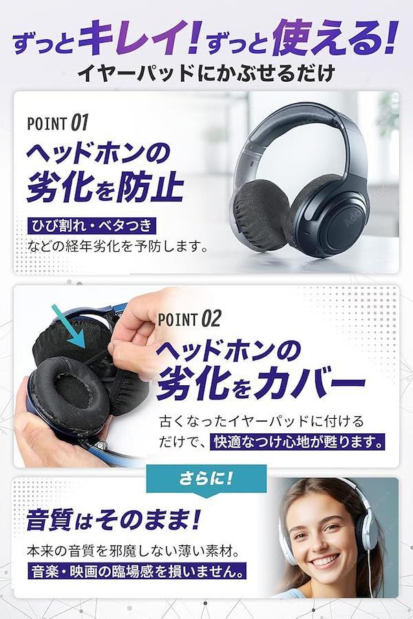 劣化カバー - 古いイヤーパッドに付けるだけで快適な付け心地が復活。 清潔・快適 - 汗や皮脂汚れを簡単に落とせて衛生的 音質への影響 本来の音質を邪魔しない薄い素材設計 音楽・映画の臨場感を損ないません。