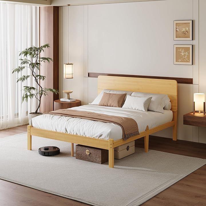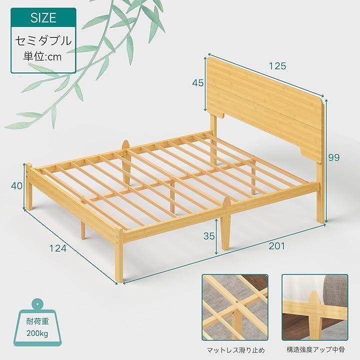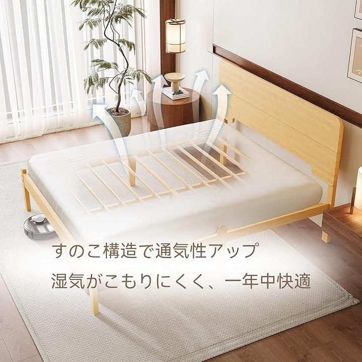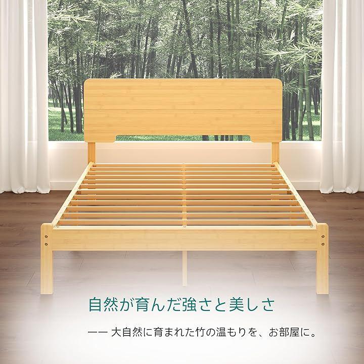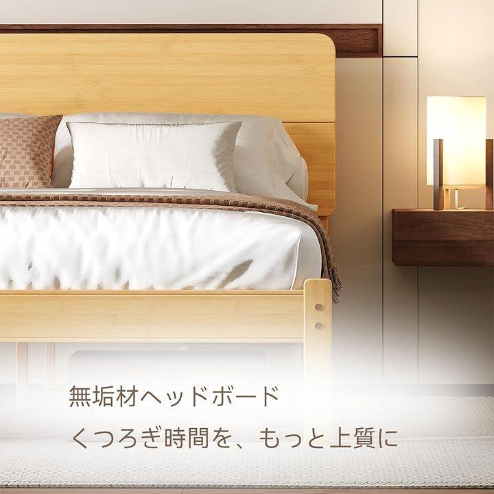 無垢材(天然竹)ベッドフレーム:天然竹を使用した実木フレーム しっかりとした質感と自然な木目が特徴で、長く使える耐久性と上質な寝室空間を演出