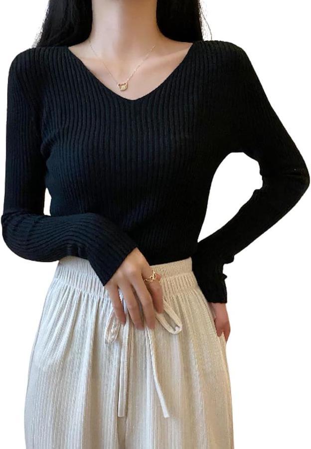 「上品で着回し抜群なVネックセーター」シンプルながらも洗練された印象を与える「Vネックセーター レディース 薄手 長袖」は、どんなスタイルにも馴染むアイテム。