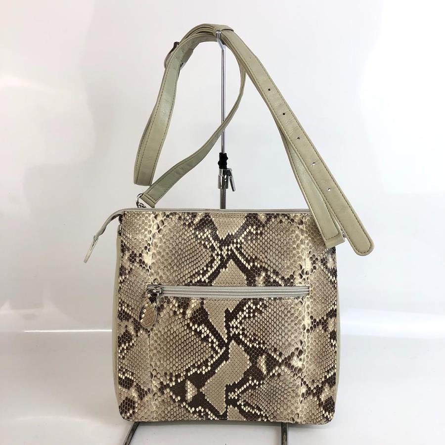 こちらは ヘビ革 型押し レザー ショルダーバッグ アイボリー ブラウン レディース ブランド になります。
