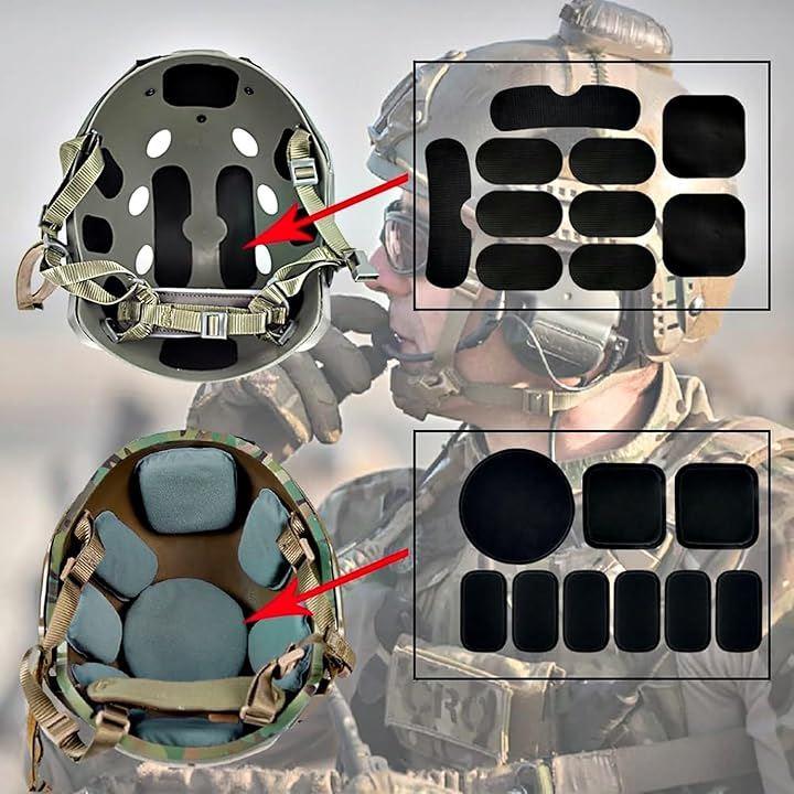 「特徴」(1)素材:EVA素材のためゴムのような柔軟性と弾力性を持ち軽量で水にも強い(2)取付け:パッド裏面に付属の両面テープでヘルメットの裏側に貼り付けることができます(3)再利用:水で洗えて再利用できます(4)幅広い用途:サバイバルゲーム用ヘルメットだけでなく様々なヘルメットに取付け可能です