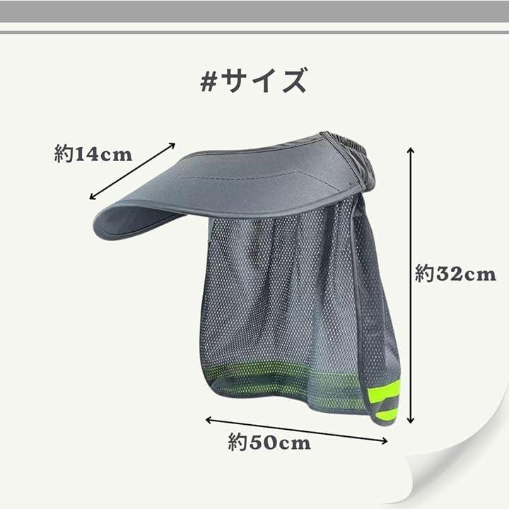 広範囲カバーの日除けバイザー」つば幅約14cmxタレ約23cmの広範囲設計により、顔や首元まで日差しから守ります。