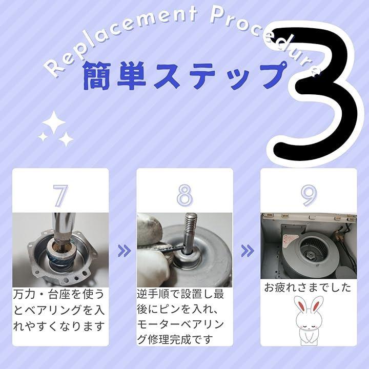 こちらのベアリング プーリー外しとベアリングとピンポンチのセットは、キッチンの換気扇修理 換気扇モーター修理 換気扇の異音修理 キッチンファンのモーター用ベアリング交換 埋め込み式換気扇修理など、24時間又は毎日のように使用する各換気扇の不調や異音など、日々の使用や経年劣化による音や不具合の際のベアリング交換キットをお使いいただけます。