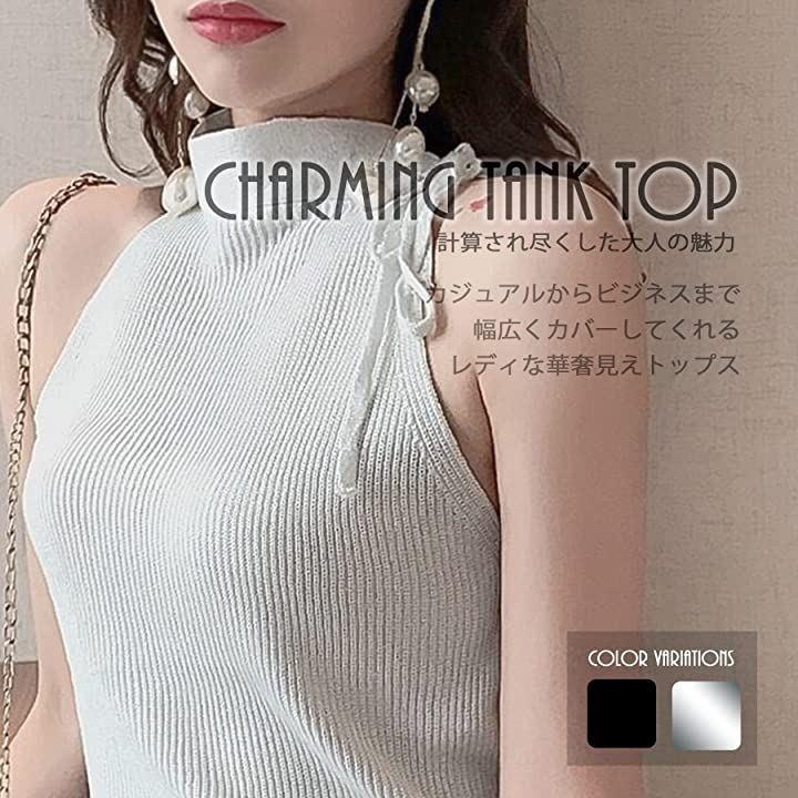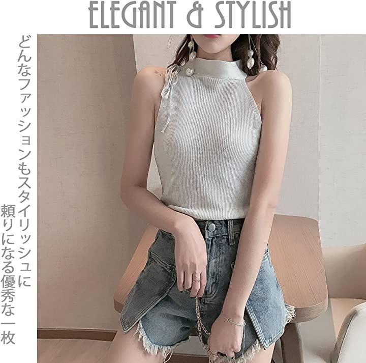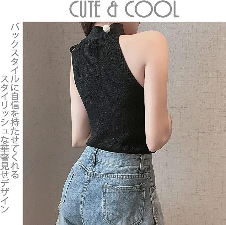 ホルターネックが女性らしく、斜めにカットされたアメリカンスリーブデザインはデコルテラインを綺麗に魅せてくれて、腕周りの細見え効果抜群。シンプルな色味とデザインで、どんなコーディネートにも合わせやすい。シンプルルックスで着回し力バツグン*自己主張する訳でもなく、それでいてちゃんと全体のポイントにもなってくます。