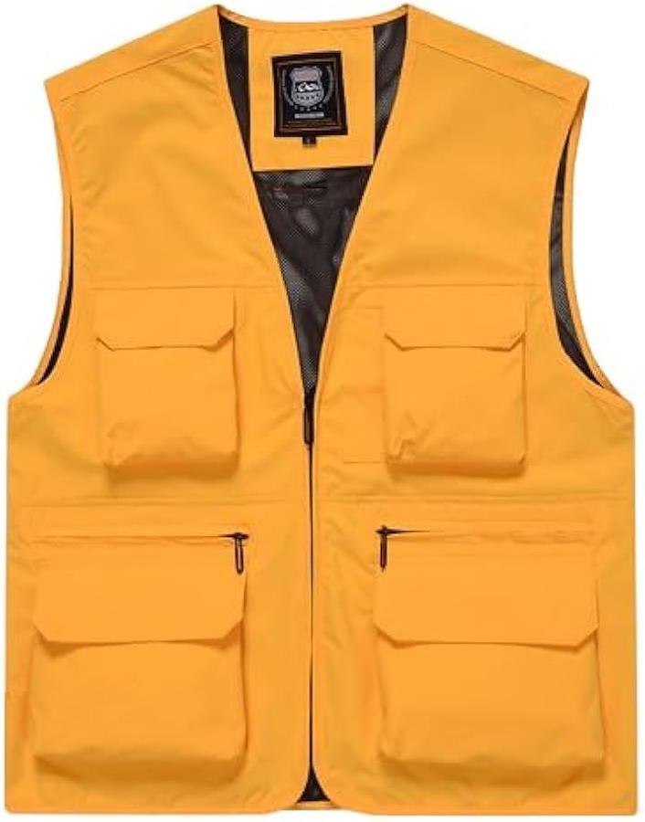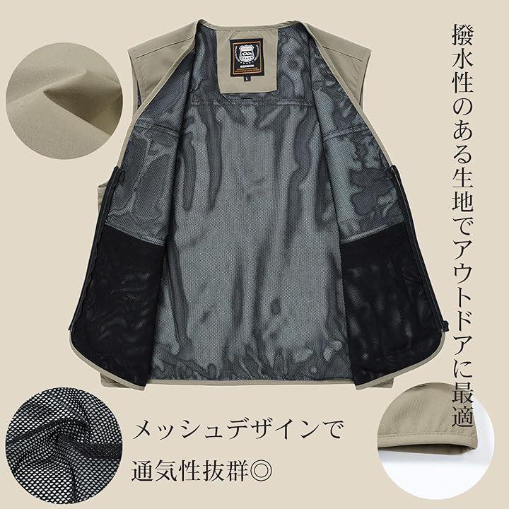 「六つポケット付き」このメンズベストは六つポケットがあり(二つはファスナー付き大容量ポケット)、鍵や携帯などの小物が簡単に収納できます。