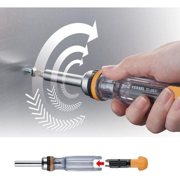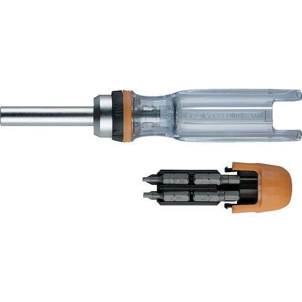 ●1本に[[+]]、[[-]]、六角ビットの合計8サイズを収納しています。