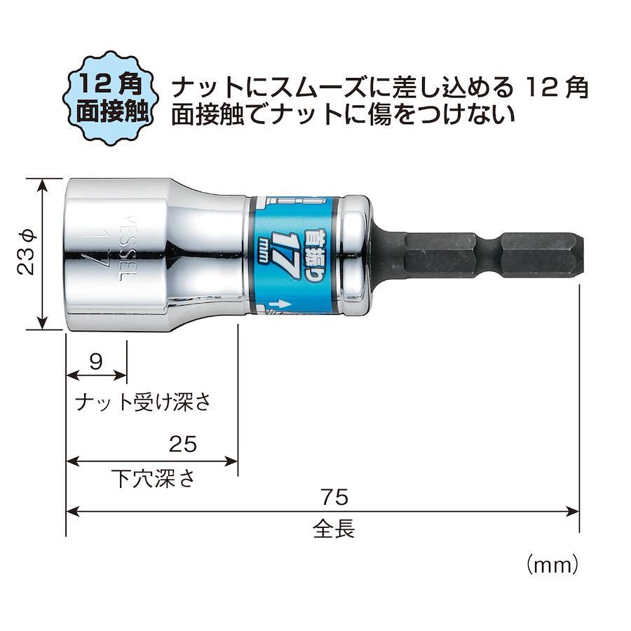 対辺:17mmΦD:23mml:9mm下穴深さ:25mm全長:75mm